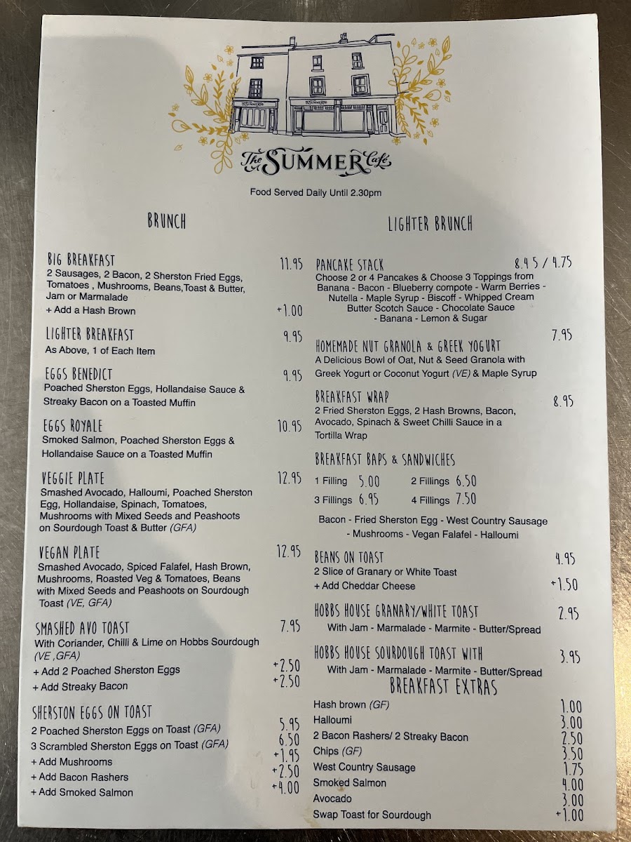 Welcome to The Summer Cafe, a charming spot located at 4 High St, Malmesbury SN16 9AU, United Kingdom. This delightful cafe shines with its vibrant brunch offerings that celebrate fresh, local ingredients. Indulge in the hearty Big Breakfast, featuring West Country sausages, eggs, and more for £12. Alternatively, the Avo Toast on Hobbs house sourdough is a must-try, perfect with poached eggs or bacon for just £8. For a healthy twist, the Power Bowl packed with spiced chickpeas and fresh greens is immensely popular.